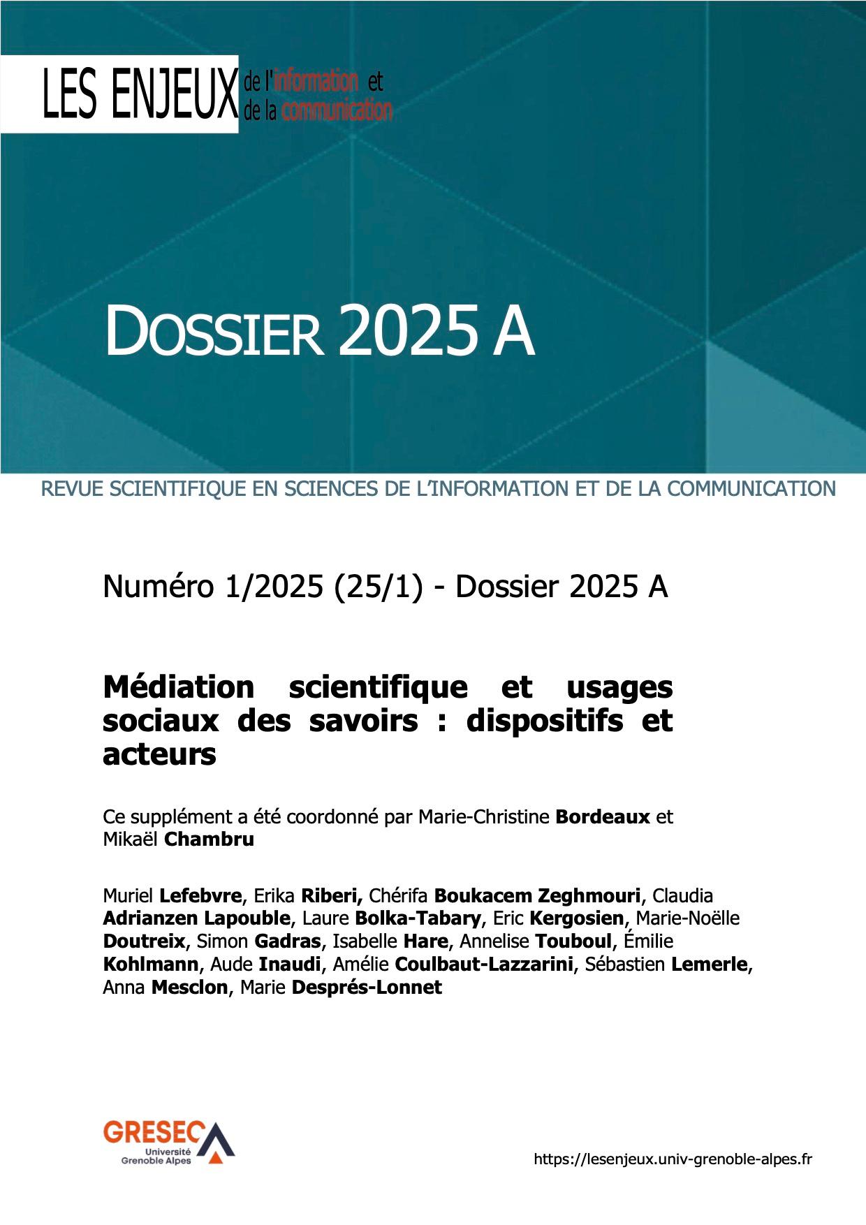 Introduction du dossier 2025 A : dynamiques organisationnelles et professionnelles de la médiation scientifique