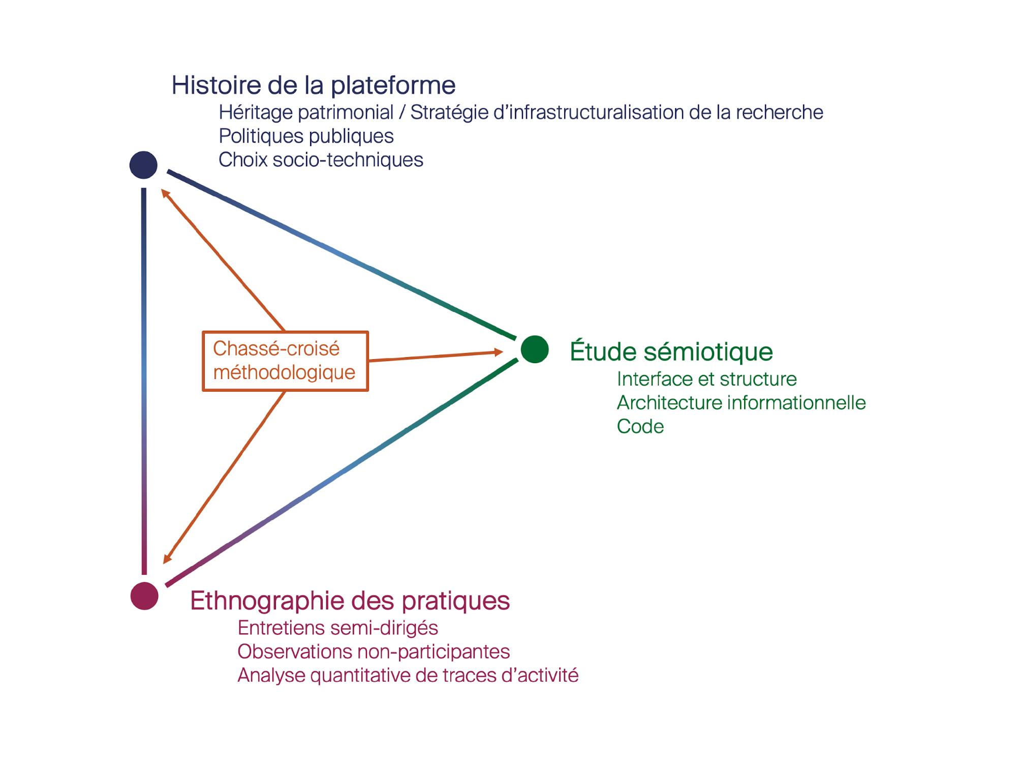Le premier pôle de cette constellation concerne le passé des plateformes étudiées et vise à comprendre, par la contextualisation historique, la genèse et le rôle de nos terrains respectifs dans un plus large paysage institutionnel, technique, informationnel (ex. Dumas Primbault, 2025b).